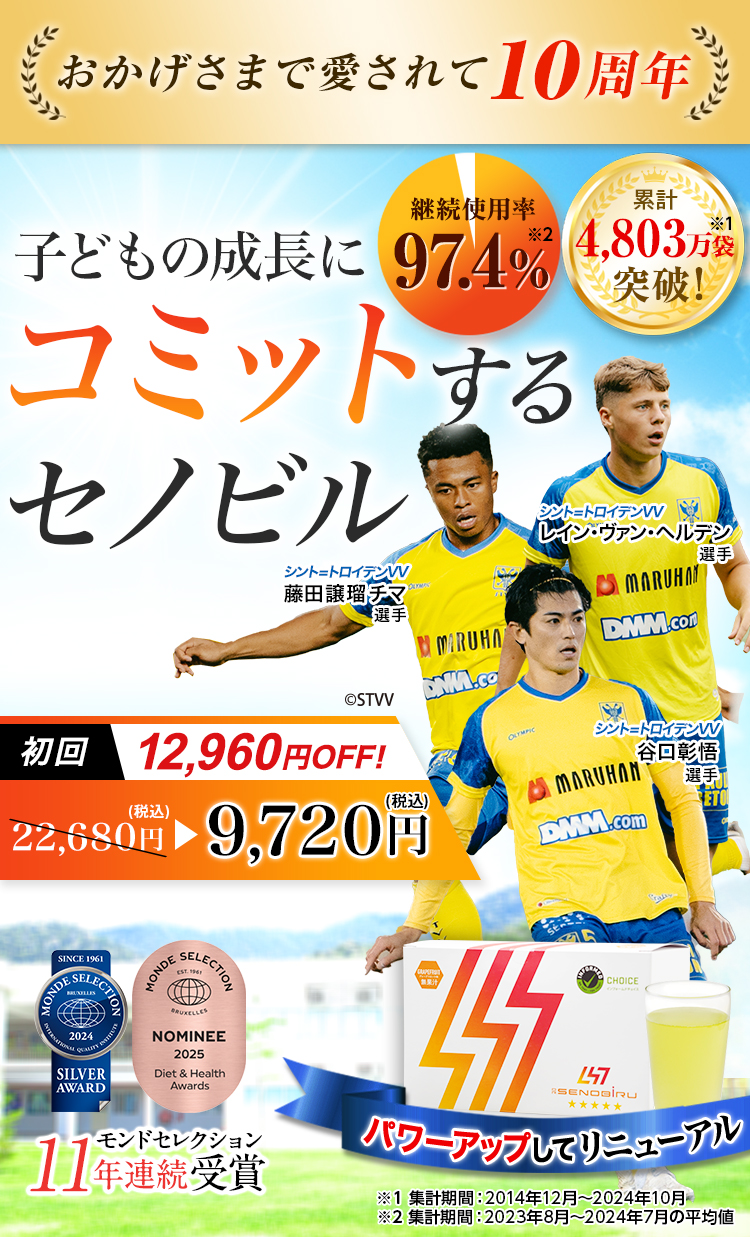 | セノビル | カルシウム、ビタミンD、アルギニン、鉄分 | 骨成長+貧血予防 |