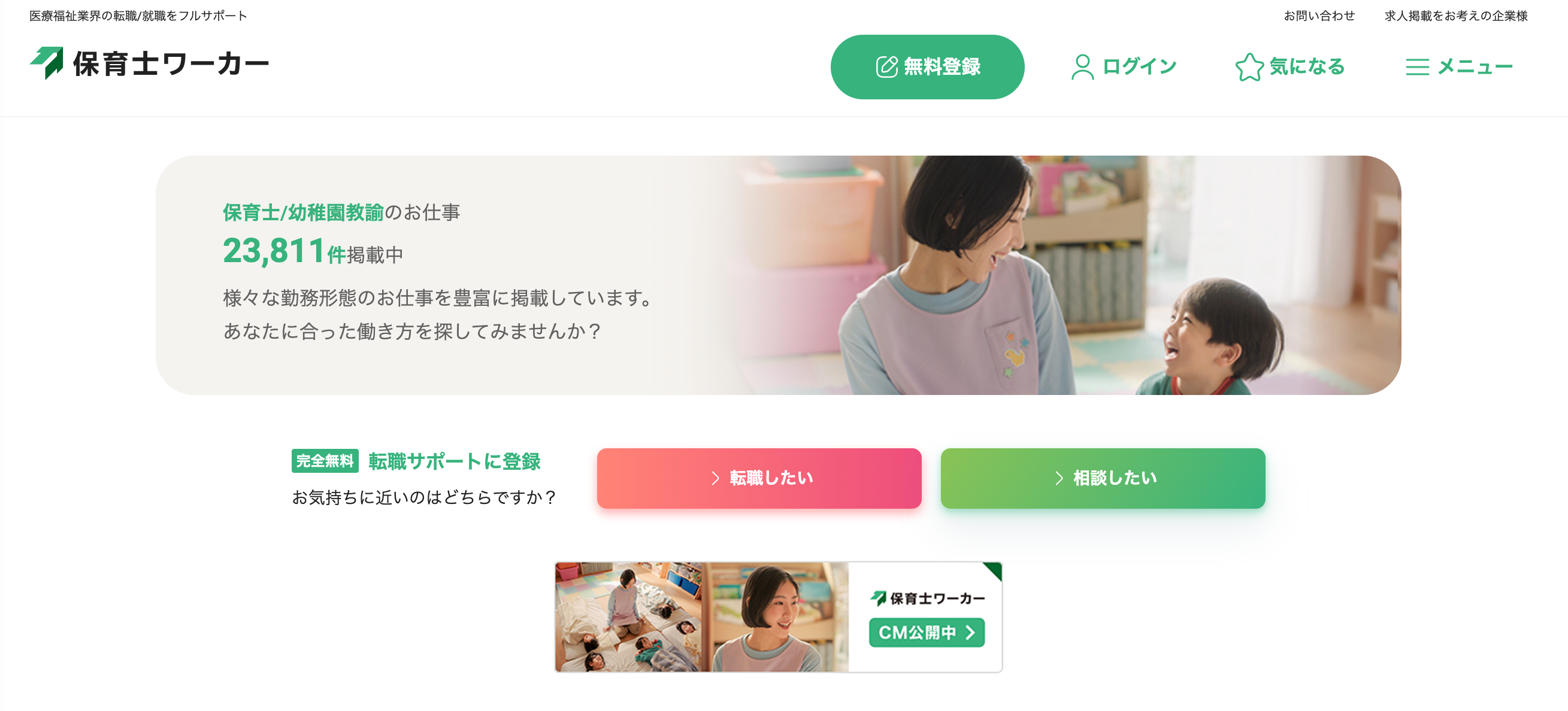 • 保育園・幼稚園・学童・病院・企業など、約23,811件以上の保育士求人を紹介