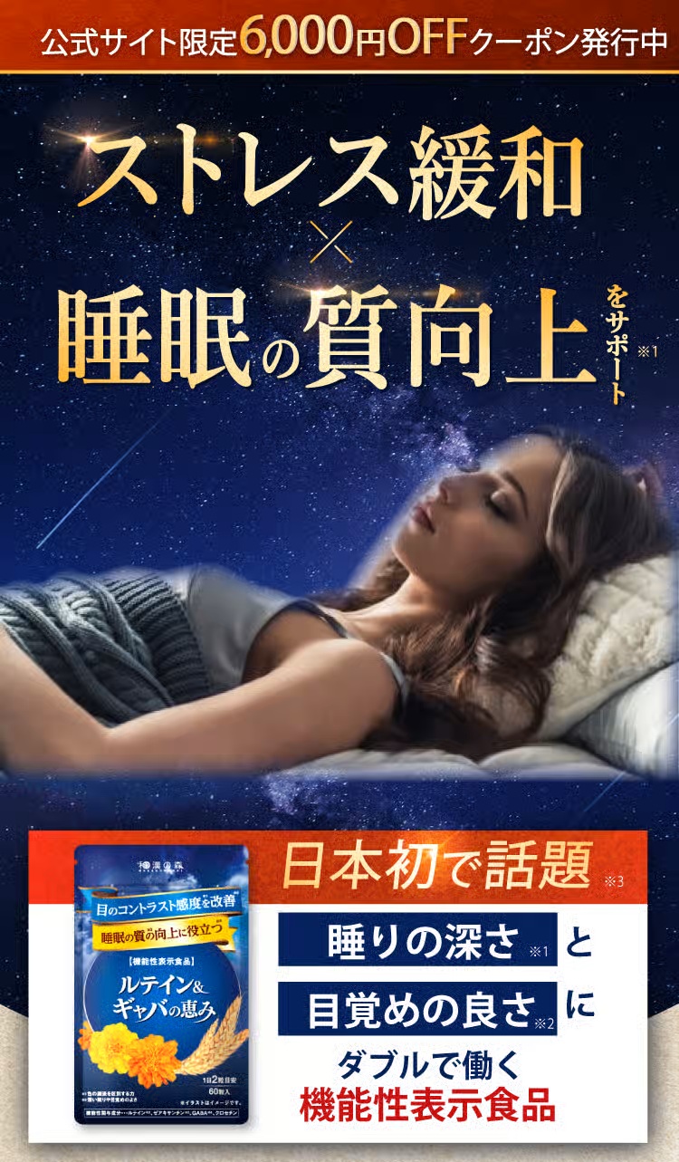 目の不調は、毎日の休息の取り方や生活のペースによって左右されることもあります…。ルテイン&ギャバの恵みならそんなトータルでサポートしてくれますよ