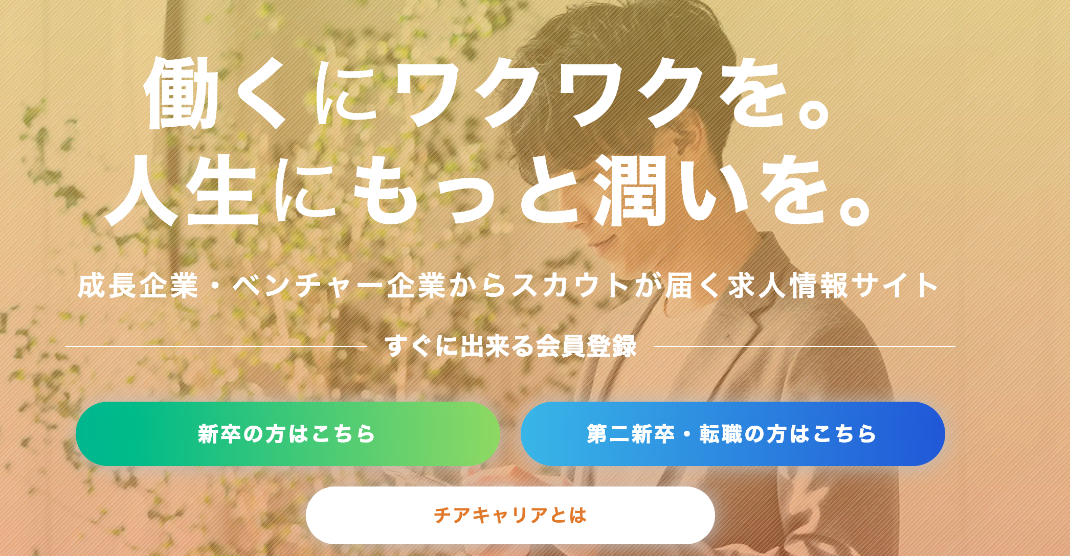 • CheerCareer(チアキャリア):ベンチャーやスタートアップ志向の学生におすすめ。