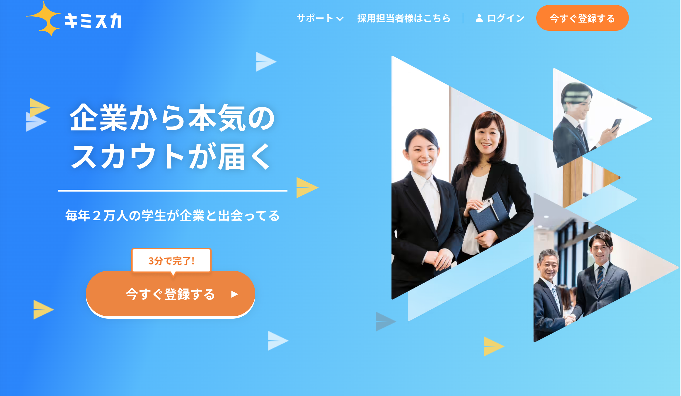 • キミスカ(Kimisuka):適性診断を活用し、高精度のスカウトを提供。