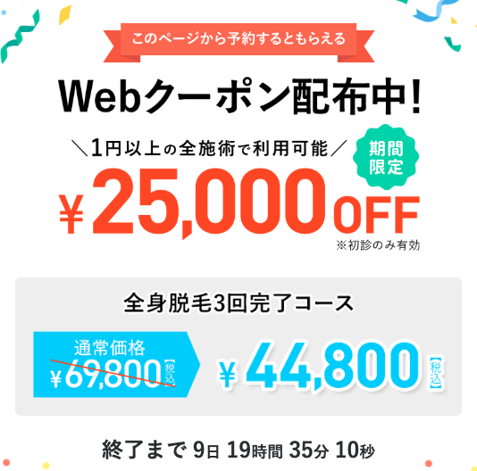 全身脱毛の安さは、新規限定プランで評価しています。