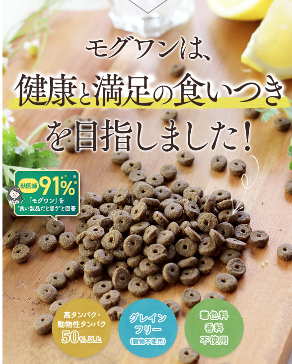 ① モグワンドッグフード:天然素材にこだわった高品質なフード