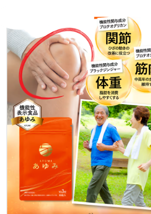 あゆみは、ブラックジンジャーとプロテオグリカンの2種類の健康サポート成分を配合し、年齢を重ねても元気に過ごしたい方を応援します。