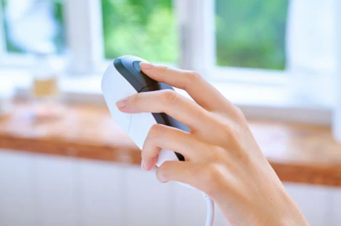 照射を行うハンドピースはわずか110gと軽量。長時間使用していても疲れないのはもちろん、女性の手にもすっぽりと収まり、ながらエステでも無理なくお使いいただけます。また、グリップ部分も使い心地を考慮し、握りやすく設計されています。