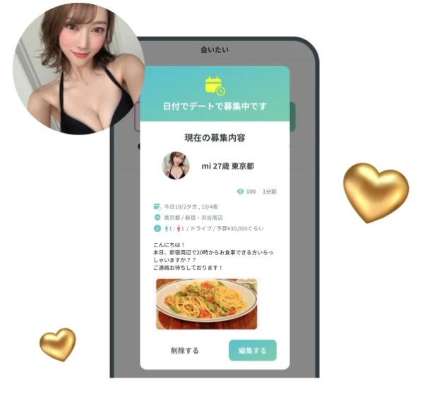 ペイターズは、大人の出会いを提供するパパ活に特化したアプリとして知られています。200万人以上の利用者がおり、20代の女性を中心に人気です。カジュアルな関係から始まり、経済的に余裕のある相手と出会えるため、特に安定した大人の男性を求める女性におすすめです。