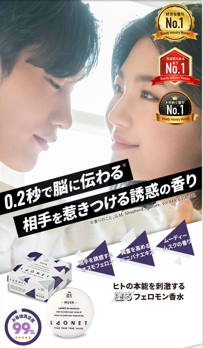 多くの女性モデルが「彼に使ってほしい」と回答したLAGNETソリッドパフューム(※自社調査)は、シトラスとムスクをブレンドした爽やかな香り。やさしく香る練り香水で、シーンに合わせて香りの印象を演出できます。ビジネスでは清潔感を、プライベートではリラックス感を与えるアイテムとしてご活用ください。