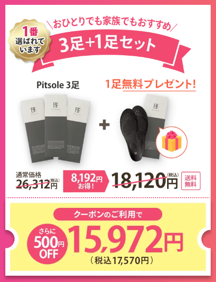 Pitsoleは、日常生活の歩行をサポートし、健康的な足元ケアを実現するインソールです。
