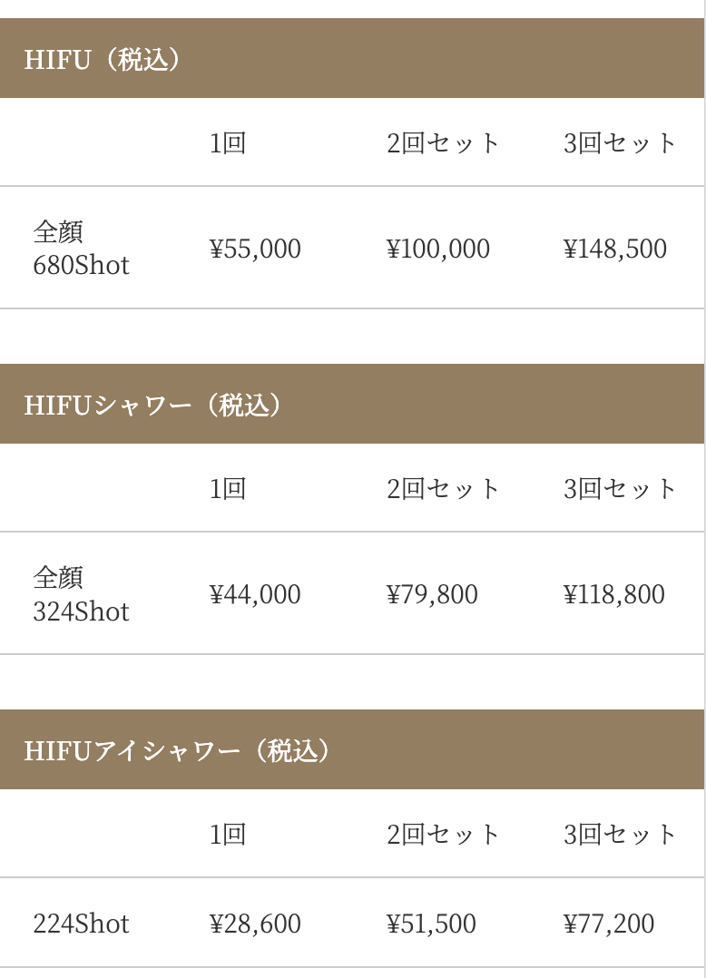 - ハイフ全顔3回が118800円の特別価格