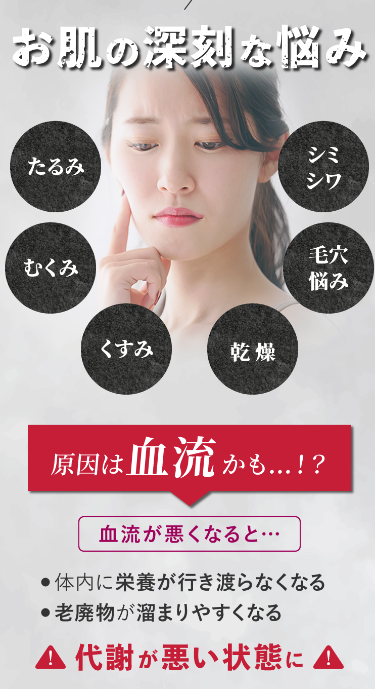 血流が悪いと肌のターンオーバーが乱れ、肌トラブルの原因となります。