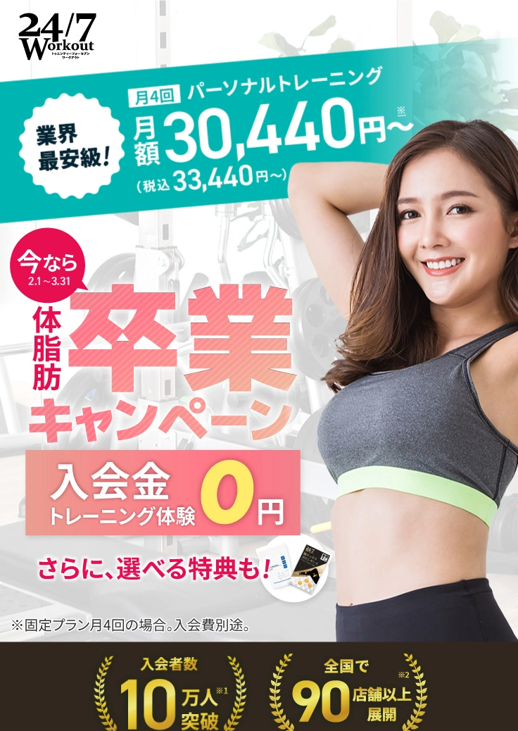 体験トレーニング後、当日入会で入会金割引20,000円(税込 22,000円)~!
