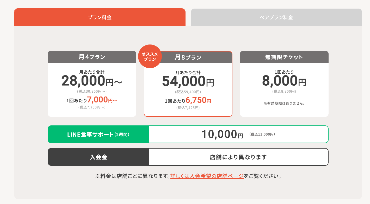食事指導やアフターサポートがオプション料金となるジムもあります。全体の費用を事前に把握しておきましょう。