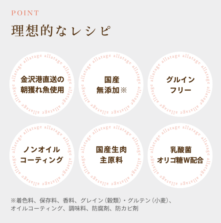 人間と同様、日々の食事はねこちゃんにとって何よりも重要です。健康な体を作り、元気でいるためには筋肉が必要です。その筋肉やハリのある皮膚、そして美しい被毛を維持するために犬猫生活は最適な栄養バランスで設計しています。また、素材そのものを活かし、余計なものは入れない、ということも重要です。愛猫のことを第一に考えるからこそ実現したまさに理想のレシピです。