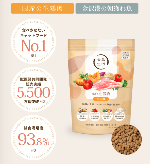 犬猫生活キャットフードは、規制のゆるい国産のキャットフードのイメージを覆す、高品質なキャットフードです。