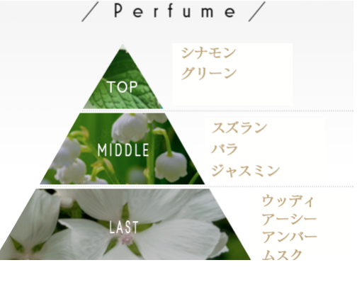 - 香り:さわやかで落ち着いたフローラル系の香り。