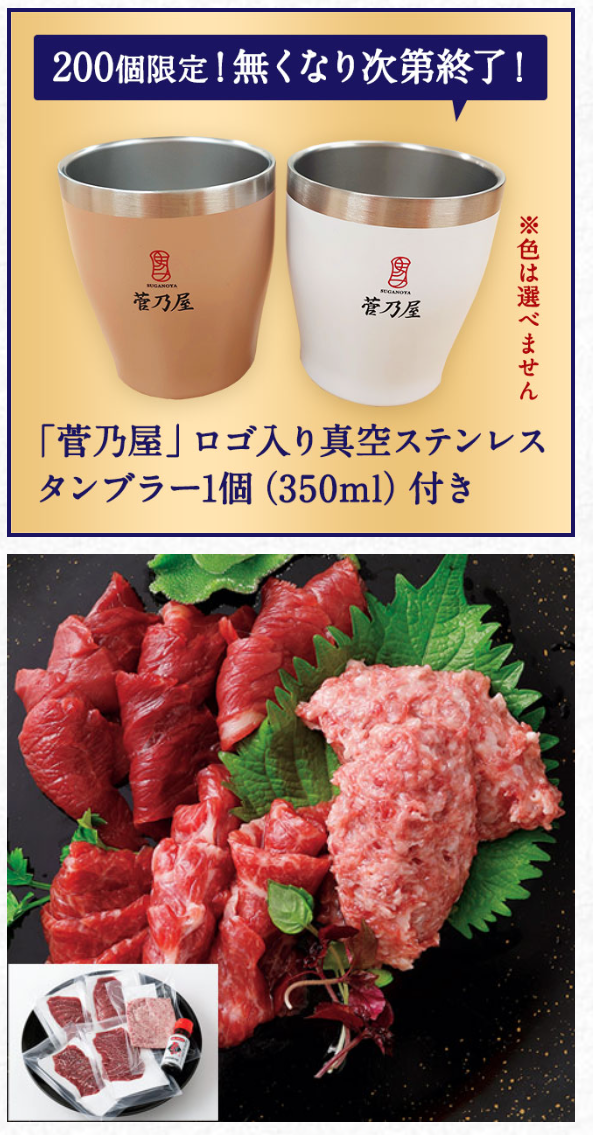 熊本に5店舗を展開する馬肉料理専門店・菅乃屋の味をご家庭でもお楽しみいただけるよう、品質と鮮度にこだわった商品をお届けしています。