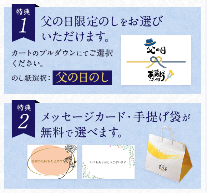 6月11日(水)午前8時までのご注文で、父の日当日(6月15日)お届けが可能です(一部地域を除く※)