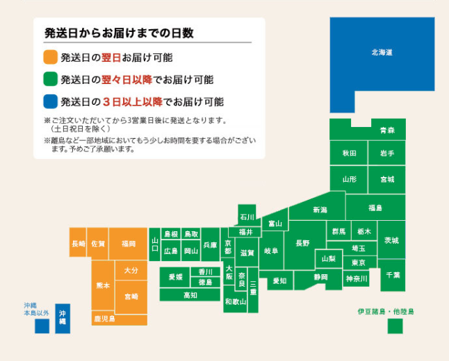 お届け日時指定がない場合は、当社規定に基づき最短で出荷いたします。