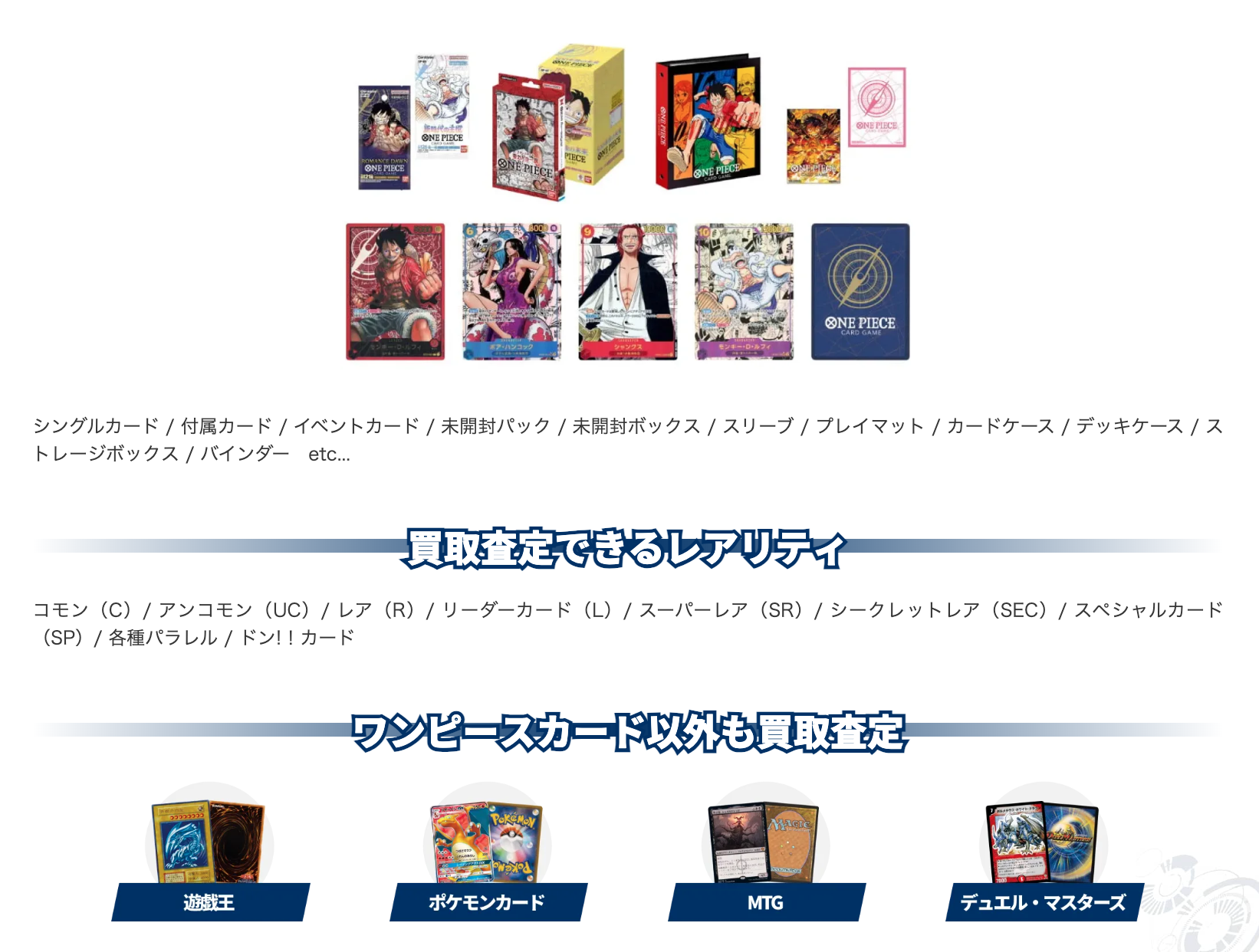 トレトクでは、すべてのワンピースカードが査定・買取対象です。