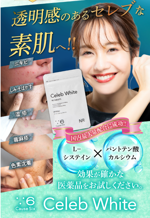 特徴と魅力 コーズシックス セレブホワイトは、L-システインとビタミンCを配合し、ニキビや肌荒れの改善をサポートする医薬品です。さらに、美白効果も期待でき、透明感のある肌を目指す方におすすめです。