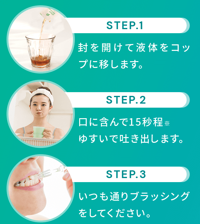 2. 20~30秒間、口全体に行き渡らせる