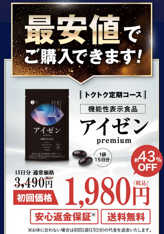 「アイゼンpremium」は、安心してお使いいただくために、初回のご購入に限り永久保証付きです。万が一お体に合わない場合は初回1袋分(15日特別価格)の代金を返金いたします。