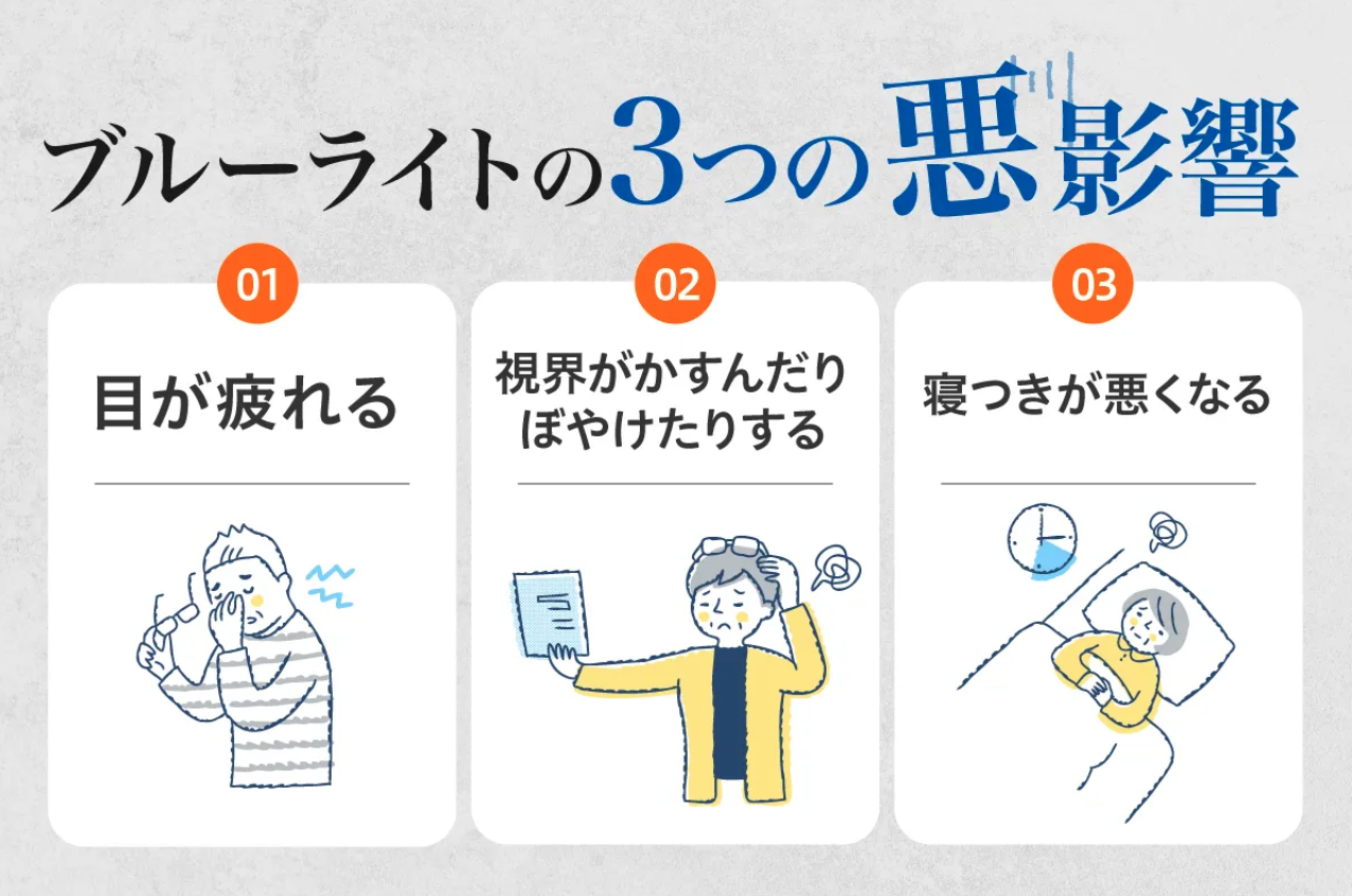 パソコン作業やスマートフォン利用が多い方、かすみが気になる方など、幅広いニーズに応える製品設計。