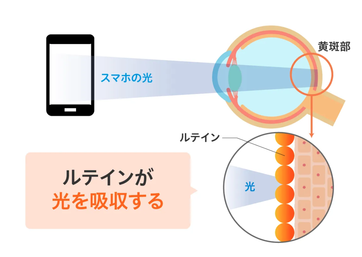 ルテインとは、目の中の水晶体や黄斑部などに元々存在している成分で、抗酸化作用を持つ黄色の天然色素。ブルーライトや紫外線の影響を軽減する可能性があり、目の保護に寄与することが示唆されています