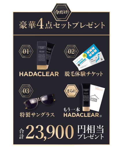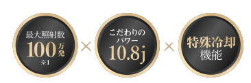 一般的に、ムダ毛ケアに必要とされるパワーは1cm²あたり1〜3J程度※といわれています。HOME CLEARは、多くの実績から導き出したバランスをもとに、1cm²あたり約2.7J、合計照射パワー10.8Jを採用。