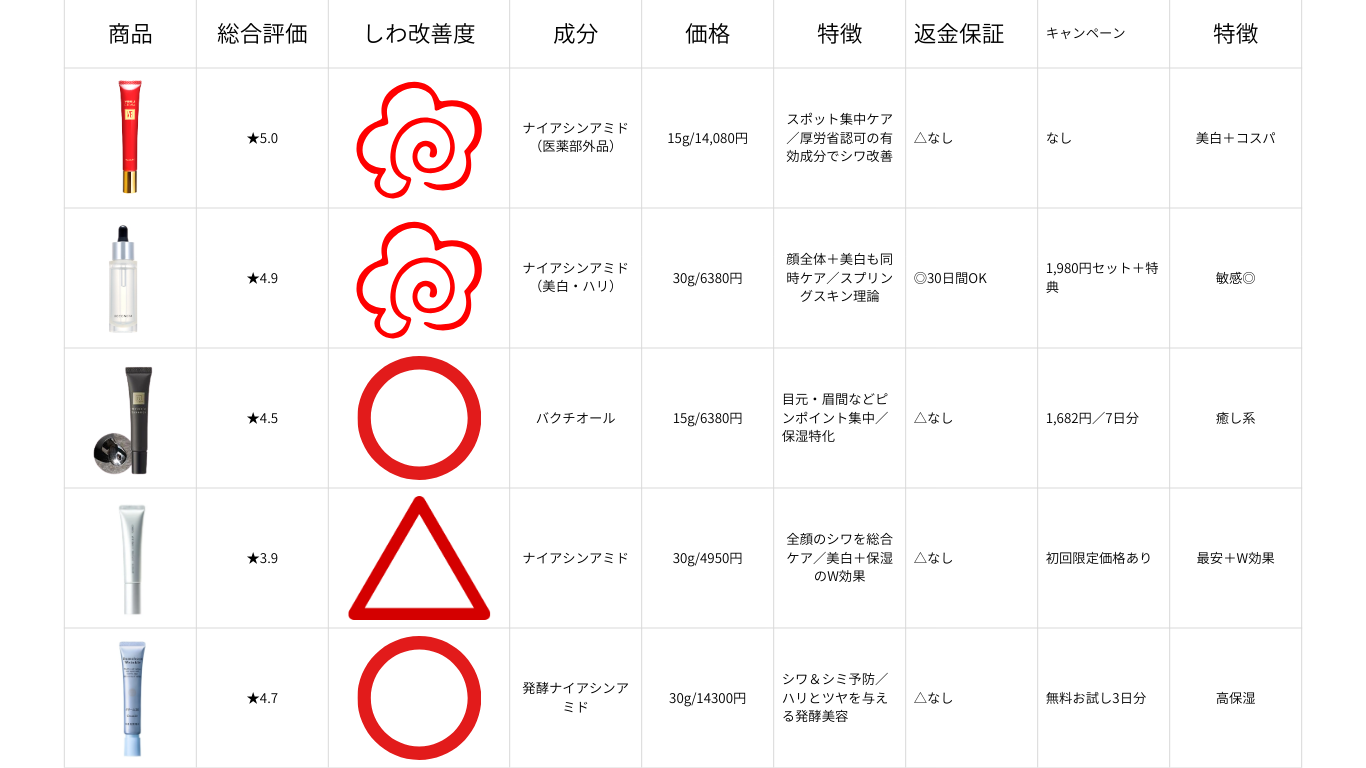 効果が認められたナイアシンアミドやレチノールが含まれているか。 -