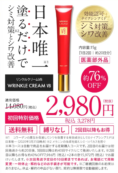 お試しいただく「フレイスラポリンクルクリームVB」は、