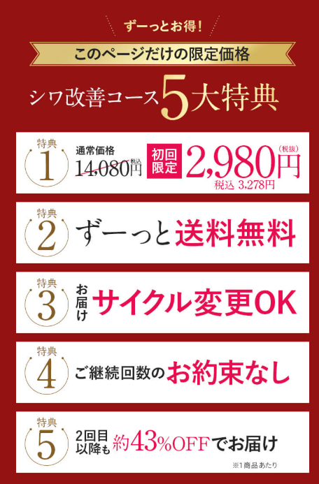 シワ改善はターンオーバー(肌の生まれ変わり)に合わせたケアが必要なので、最低でも1〜2ヶ月は継続しましょう。