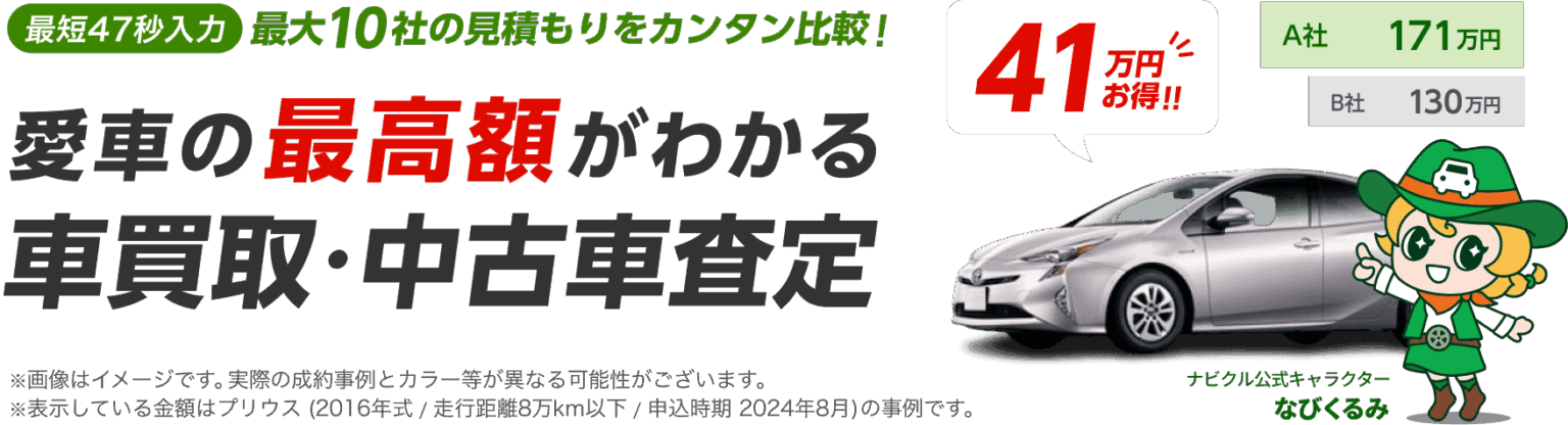 ナビクルやズバット車買取比較などのサービスでは、車種や年式、走行距離などを入力することで目安となる価格帯をチェックできます。