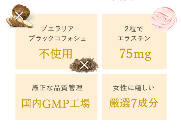 プエラリアやブラックコホシュは不使用で、自然由来の成分のみを厳選しています。