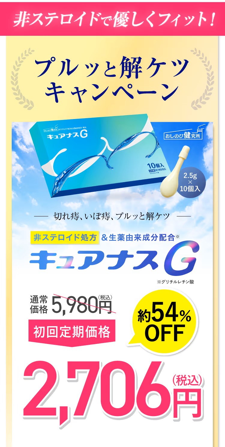 キュアナスGは現在、公式サイトで特別価格にてご案内中です(定期初回約54%OFF ※2025年10月現在)。