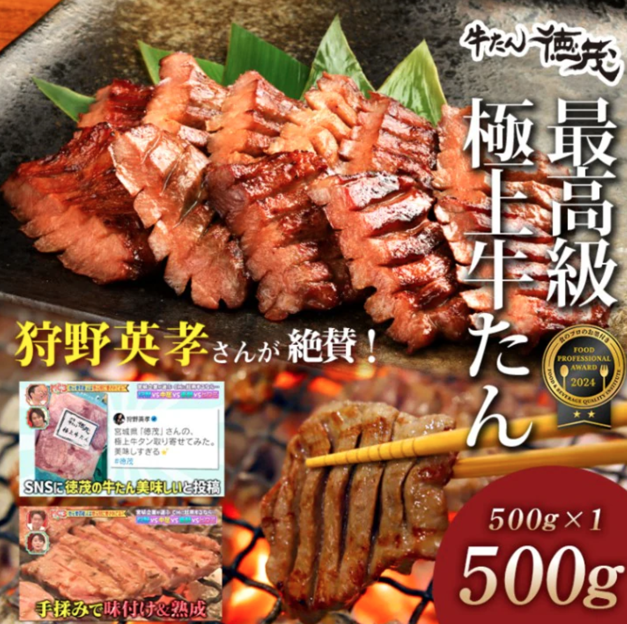 4人前の500g入りで、大切な人との食事や特別な日のごちそうにもぴったりです。家庭で手軽に、そして贅沢に牛たんを味わえます。