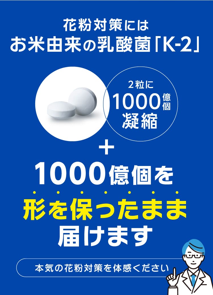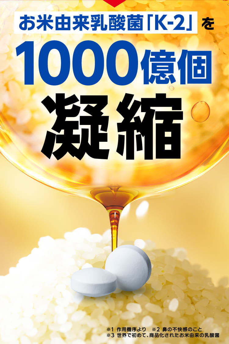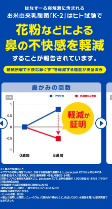まず、花粉やハウスダストによる「鼻の不快感」を軽減することが報告されている「植物性乳酸菌K-2」。