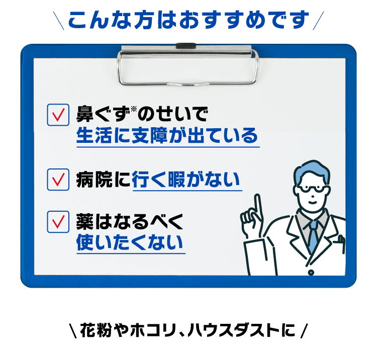 - 花粉やホコリによる鼻の不快感を本気で何とかしたい方