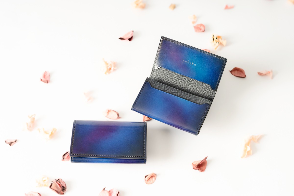 yuhakuは「革のアート」とも称される手染めの美しさが魅力。1本1本丁寧に染め上げられたグラデーションカラーは、唯一無二の存在感を放ちます。ビジネスにもフォーマルにも映える1本。
